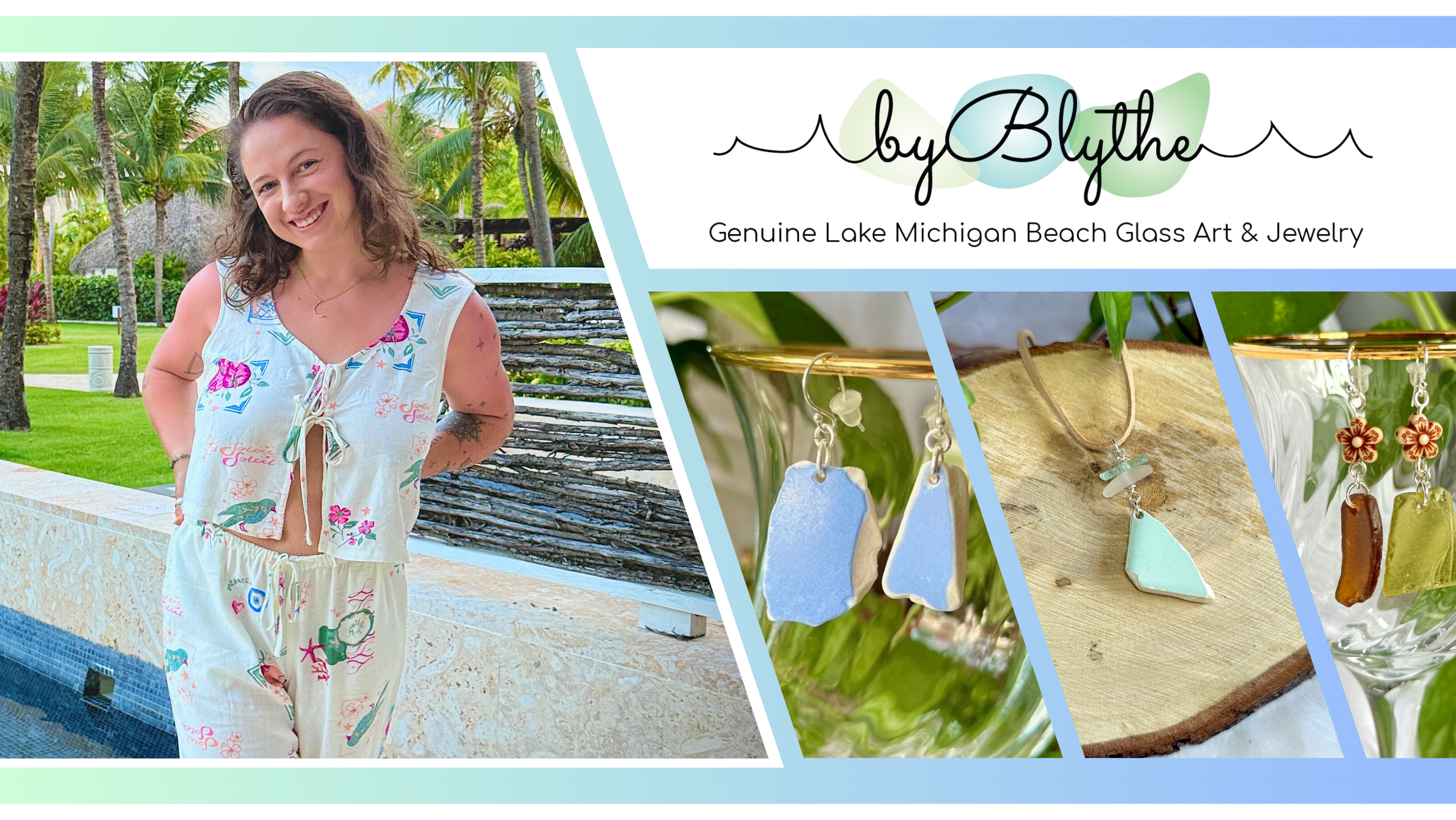 Blythe is the artist behind byBlythe, creating stunning one-of-a-kind jewelry pieces using beach glass found right on the shores of Lake Michigan. Each piece tells a story of time, water, and beauty -transformed by nature and brought to life by her eye for design. Her work captures the quiet magic of the lake and turns it into wearable art you’ll treasure.