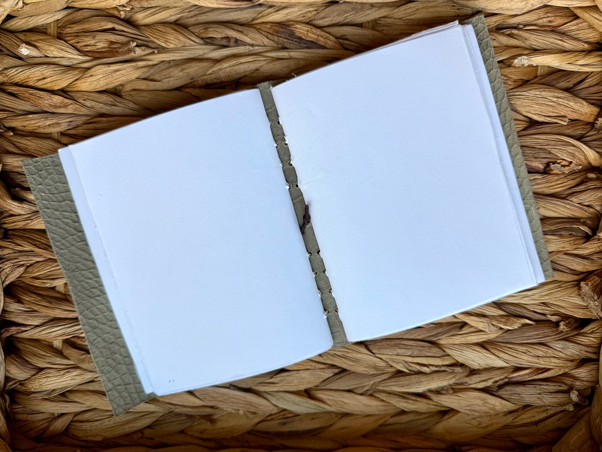 This handcrafted journal features a striking gray and brown alligator-embossed cowhide leather cover, finished with a sleek black elastic closure for modern functionality. Hand-sewn with cream and gray linen thread, it includes 80 pages of smooth 68 lb paper — ideal for journaling, sketching, or daily notes. A bold and tactile piece that blends rugged style with thoughtful craftsmanship.