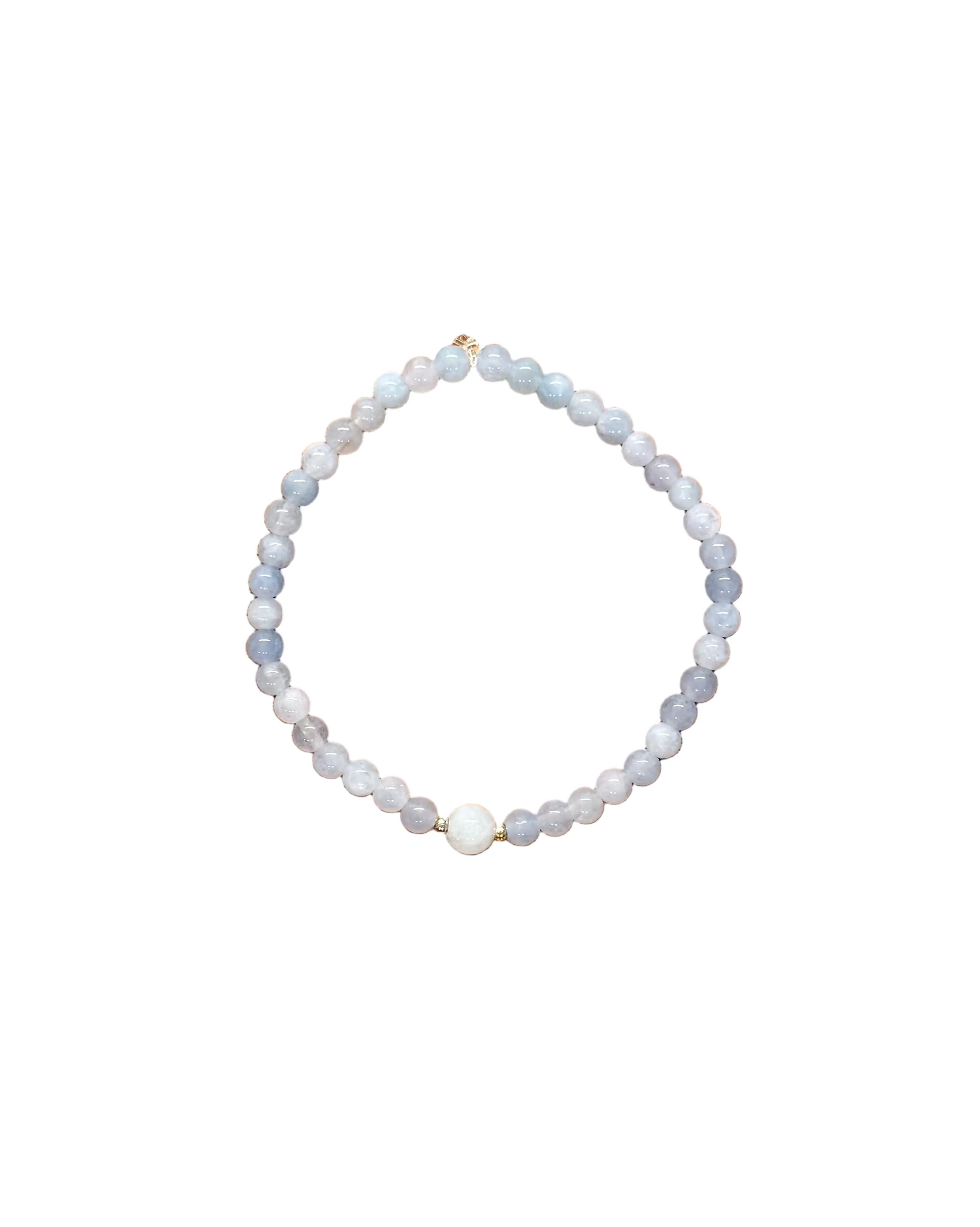 This delicate milky gray translucent bracelet exudes subtle elegance. Perfect for adding a touch of color to casual or formal outfits, it features uniformly sized beads and a simple, charming design. An accessory that brings a cool, calming vibe while maintaining versatility and style.