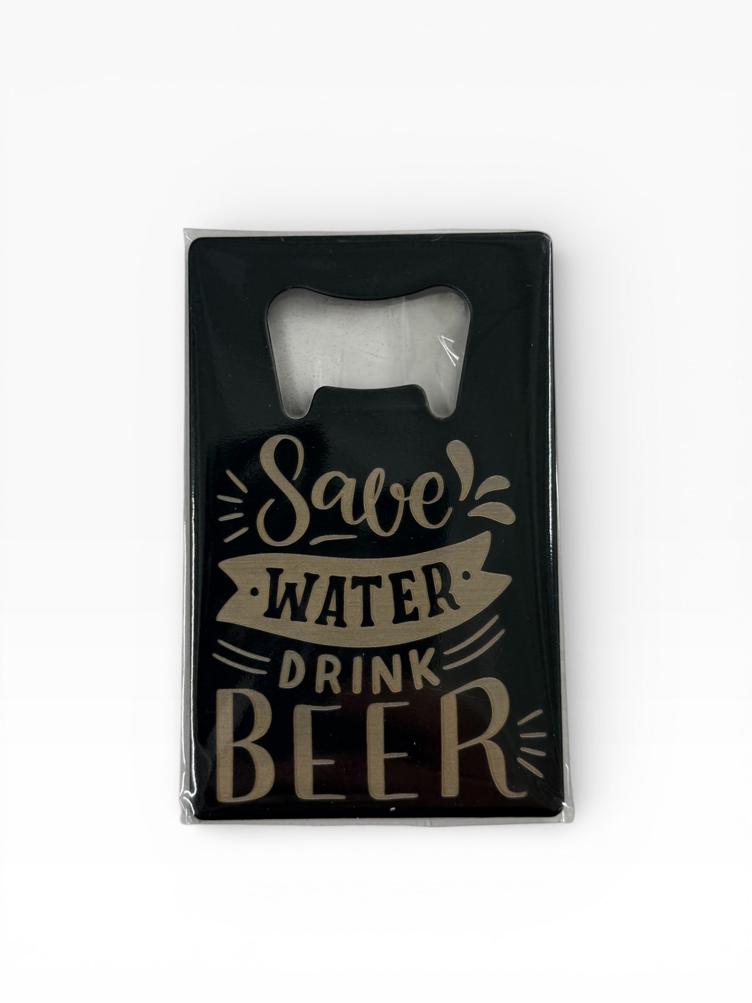 A classic saying with a sense of humor. šŗĀ This engraved metal bottle opener features the phrase āSave Water Drink Beer,ā making it a fun and functional gift for beer lovers, dads, and anyone who enjoys a good laugh with their cold drink.