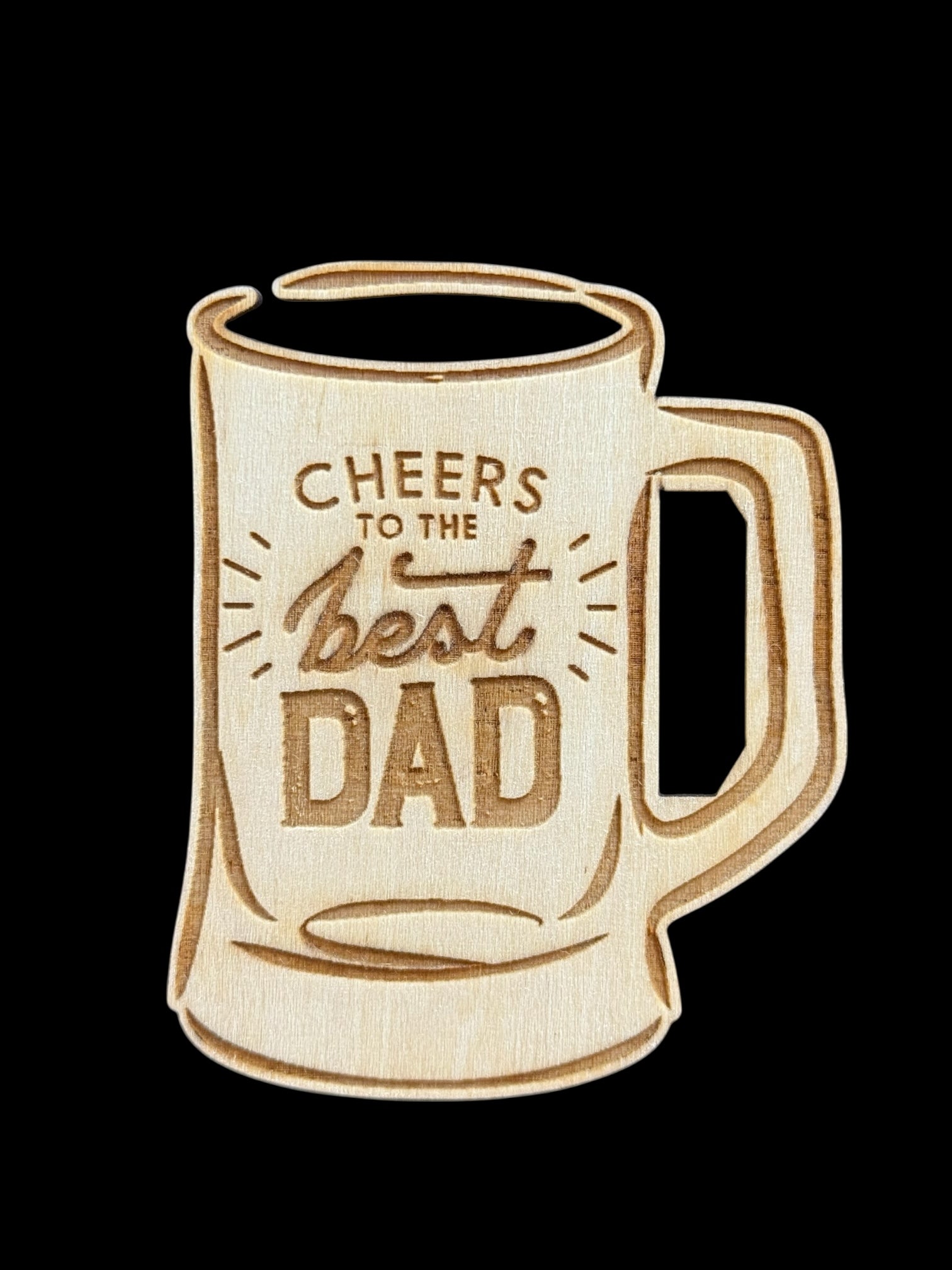 "Cheers to the Best Dad" Beer Glass Wood Magnet