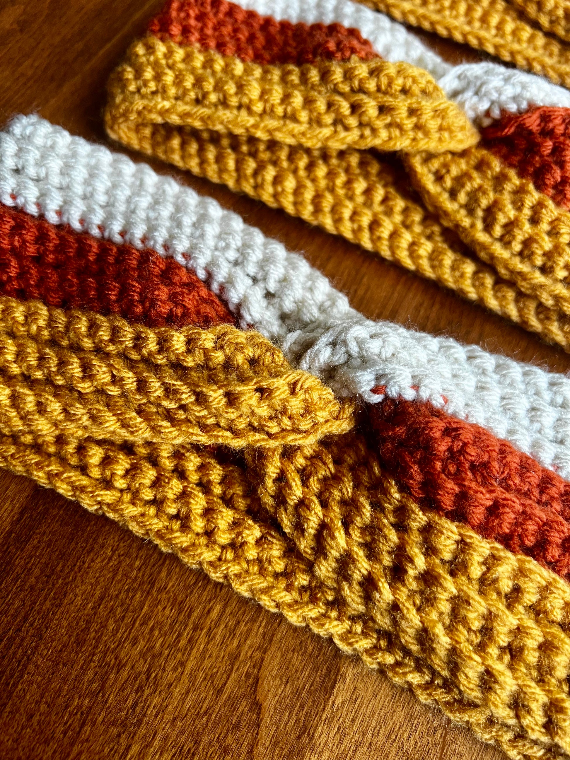 Handmade with soft acrylic yarn in the classic candy corn stripes of white, orange, and yellow. This cozy twist-style headband is the perfect fall accessory β festive for Halloween, warm for chilly days, and fun for all ages. ππ¬