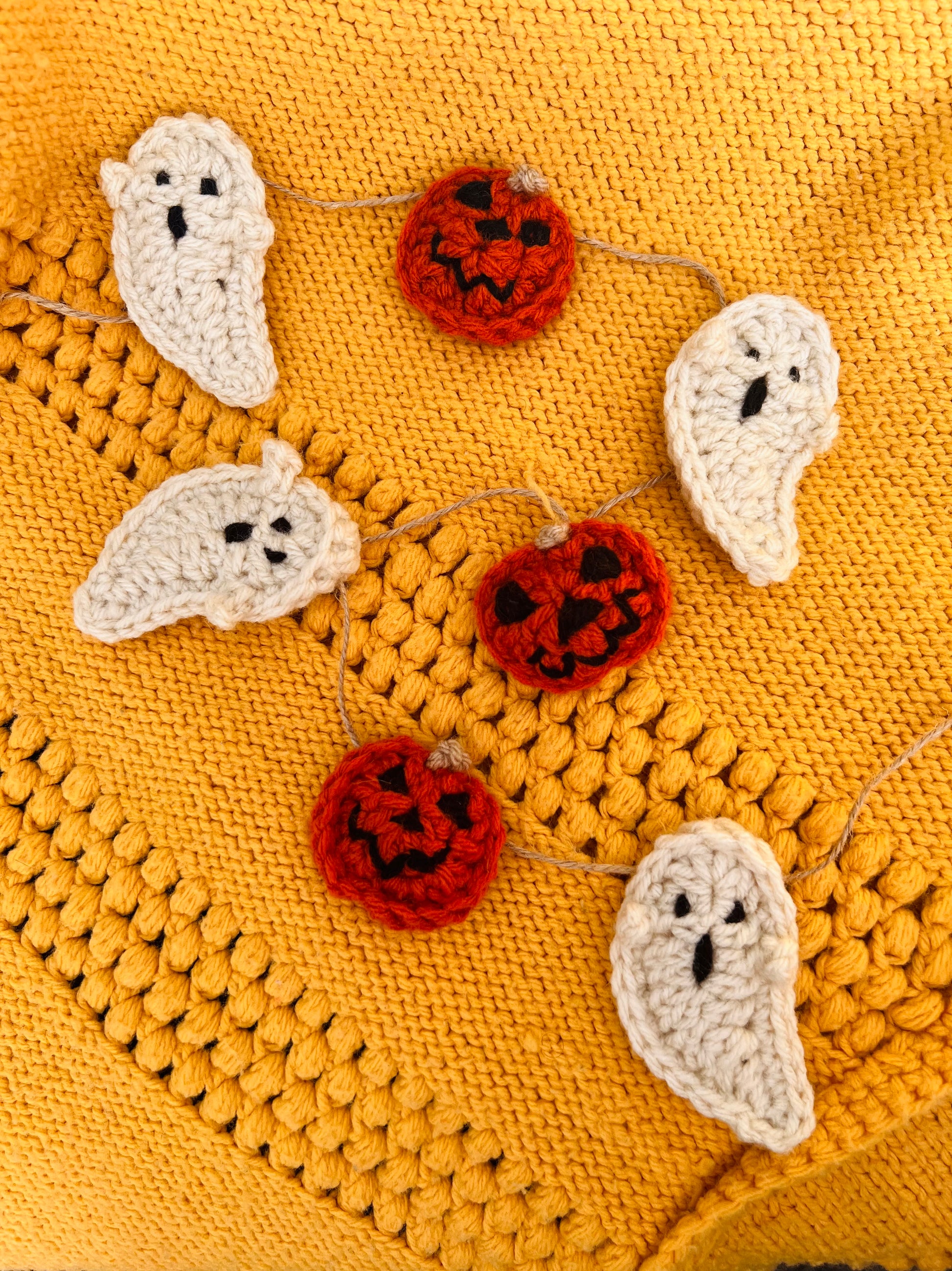 A festive mix of spooky and sweet! This handmade garland features four flat crochet ghosts and three pumpkins, all strung on twine for easy hanging. Perfect for adding a playful Halloween touch to your mantel, doorway, or party décor. 🎃👻