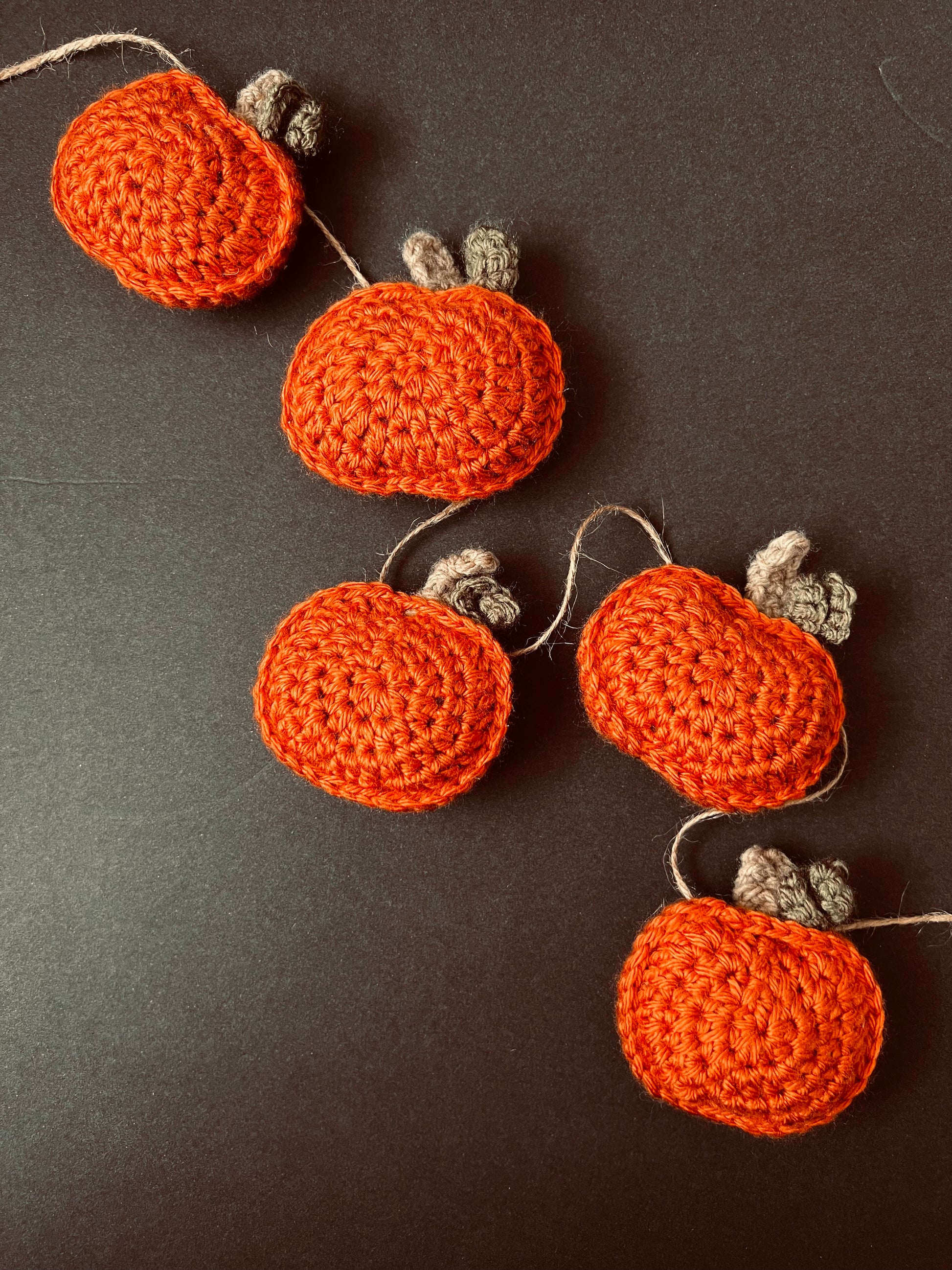 Add a touch of handmade charm to your fall décor with this festive garland. Featuring five 3D crochet pumpkins, each complete with a stem and leaf, all strung together on rustic twine for easy hanging. Perfect for mantels, doorways, or holiday gatherings, this garland brings cozy seasonal vibes to any space. 🎃🍂