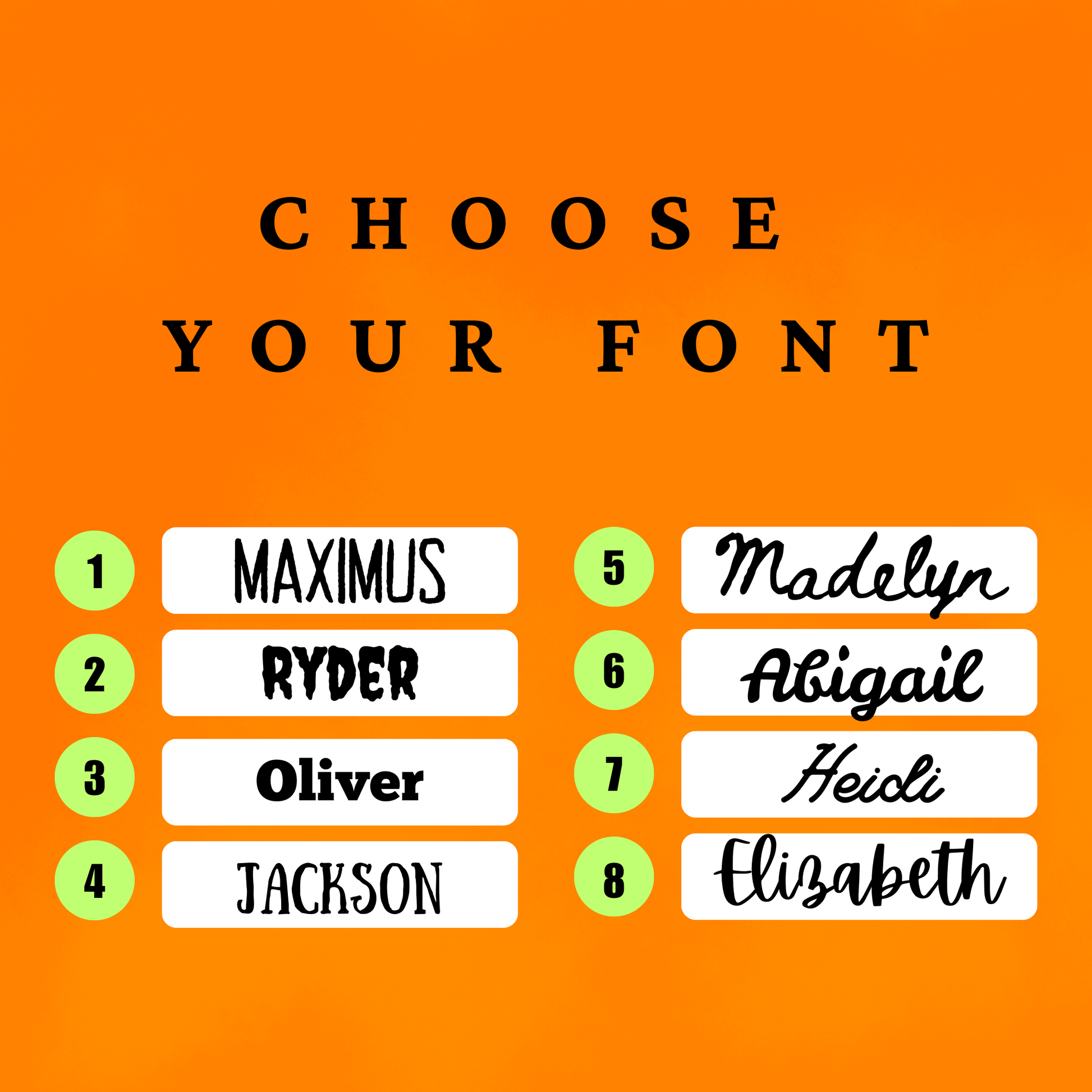 Your personalized wood name plate in your choice of font! Use the wood outline to make sure your letters are even when securing to the finished pumpkin!