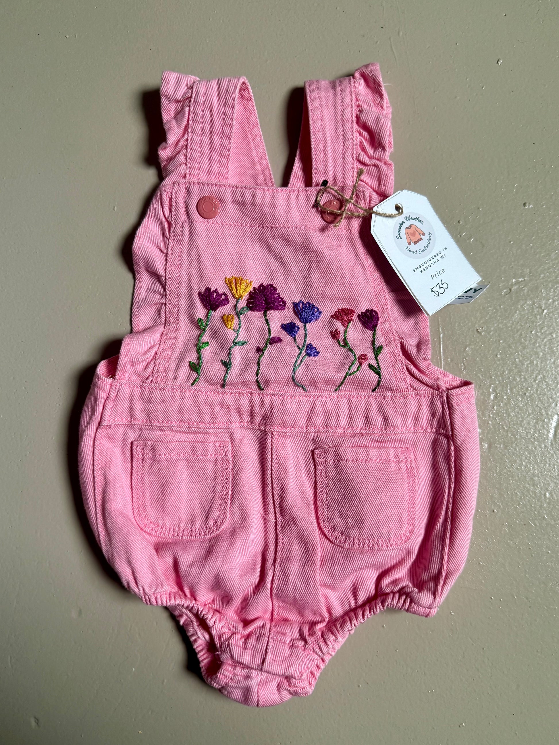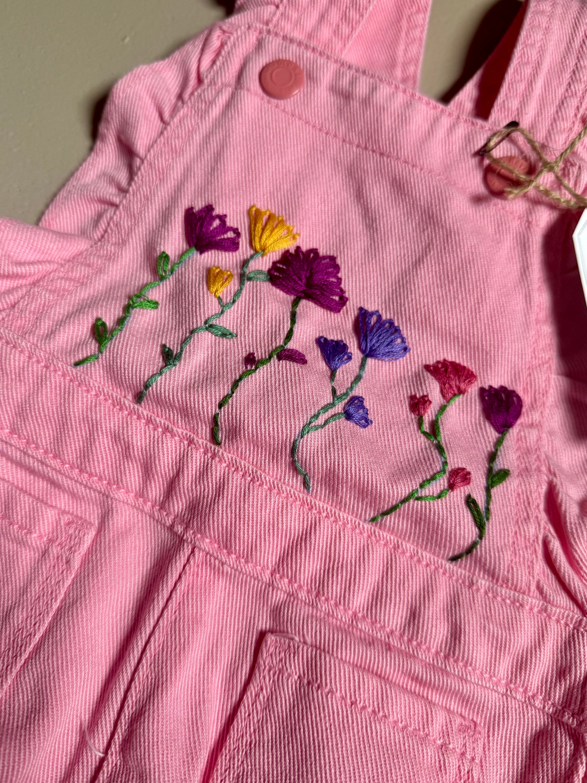 033 - Pink Floral Embroidered Denim Jumper 18-24 Months