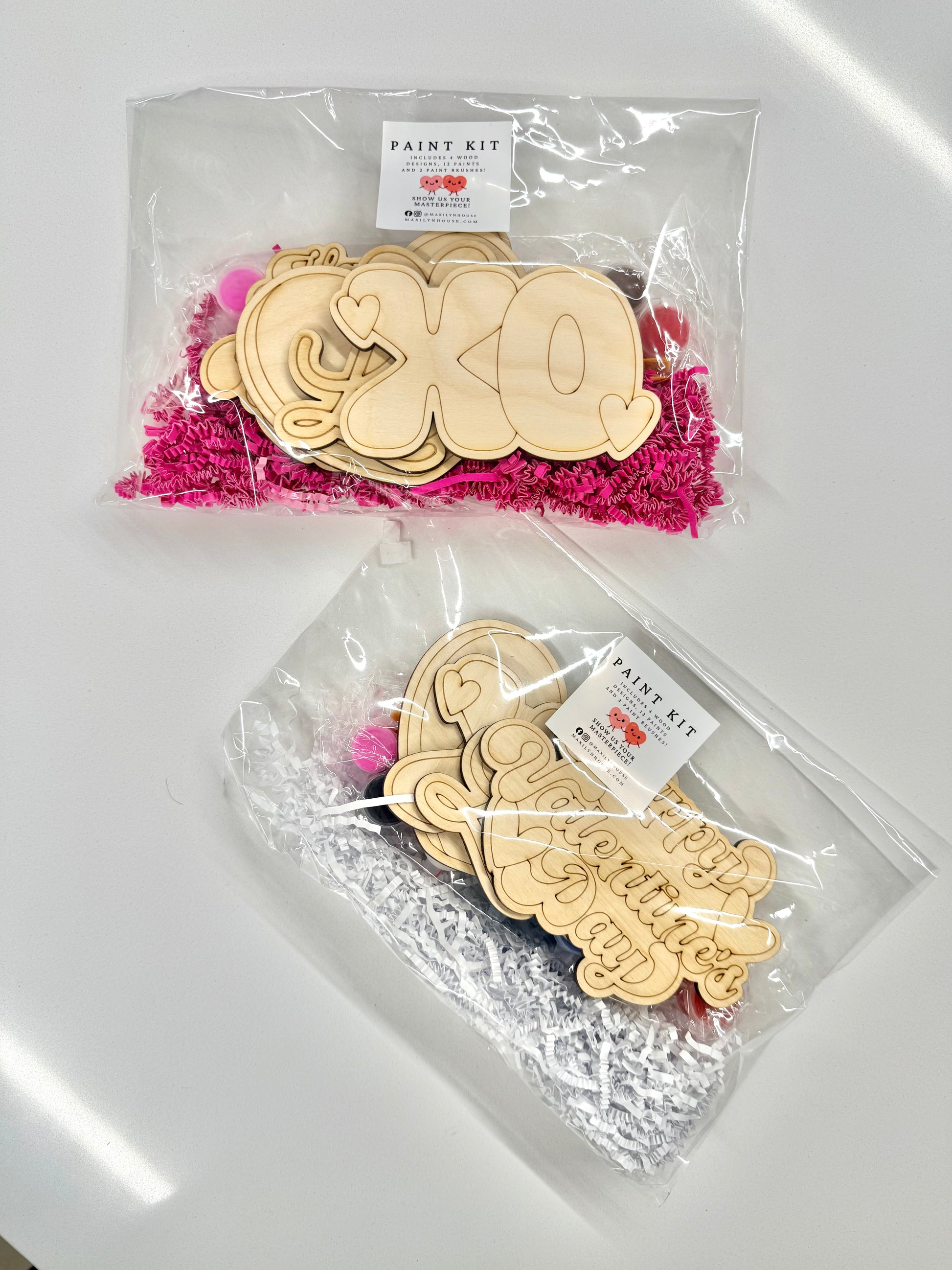 Celebrate Valentine’s Day with this paintable wooden kit, featuring 4 fun designs: Happy Valentine’s Day, XO, Love, and Be Mine Heart. Each kit comes with 12 washable paints and 2 brushes, giving you everything you need to create colorful, personalized Valentine decorations or gifts.