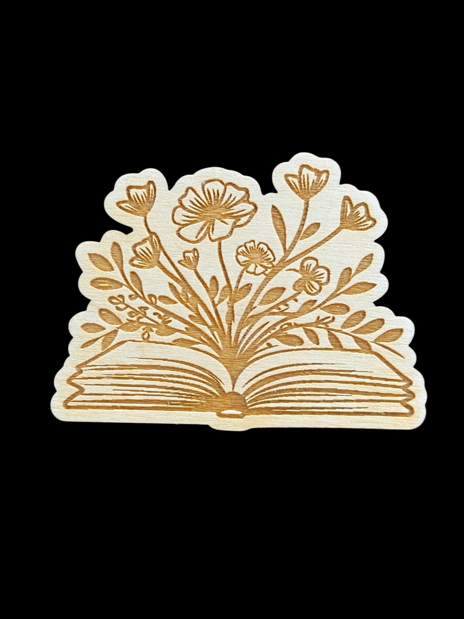 Let your love of stories blossom. This hand-painted wood magnet features an open book with delicate florals spilling out—symbolizing imagination, growth, and the beauty that blooms between the pages. A charming gift for book lovers, teachers, and anyone who finds magic in a good read.